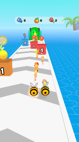 1、选择初始精灵后进入食物收集关卡,通过左右滑动控制精灵移动方向。