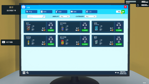 2、接着打开右手边的门,进入后点击电脑,购买商店要售卖的商品,以及货物架;