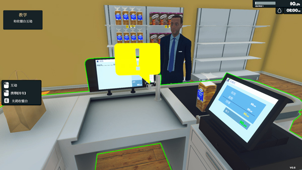5、最后到超市门旁点击开业,接着就会有顾客进店购买,玩家需要为顾客结账找零。