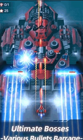 细腻的科幻画风、金属质感满满的战机界面;数十种华丽的组合弹幕特效及爆破效果,给你的听觉和视觉前所未有的畅快感受!