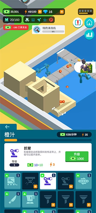1、进入超级制造工厂后,玩家能够通过对各个车间的机器进行升级,以此来提高生产速度。