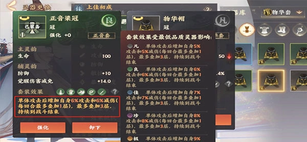 2、灵器的稀有度从低到高分为「绝、极、珍、佳、良」6类,越高阶的灵器,灵韵和套装效果越好。