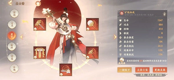一、灵器介绍 1、一个名士的强弱,很大程度上是由穿戴的灵器所决定,灵器有上衣、鞋子、配饰等五个位置,一整套的灵器还能为名士激活额外的特定效果!一整套的灵器还能为名士激活额外的特定效果!