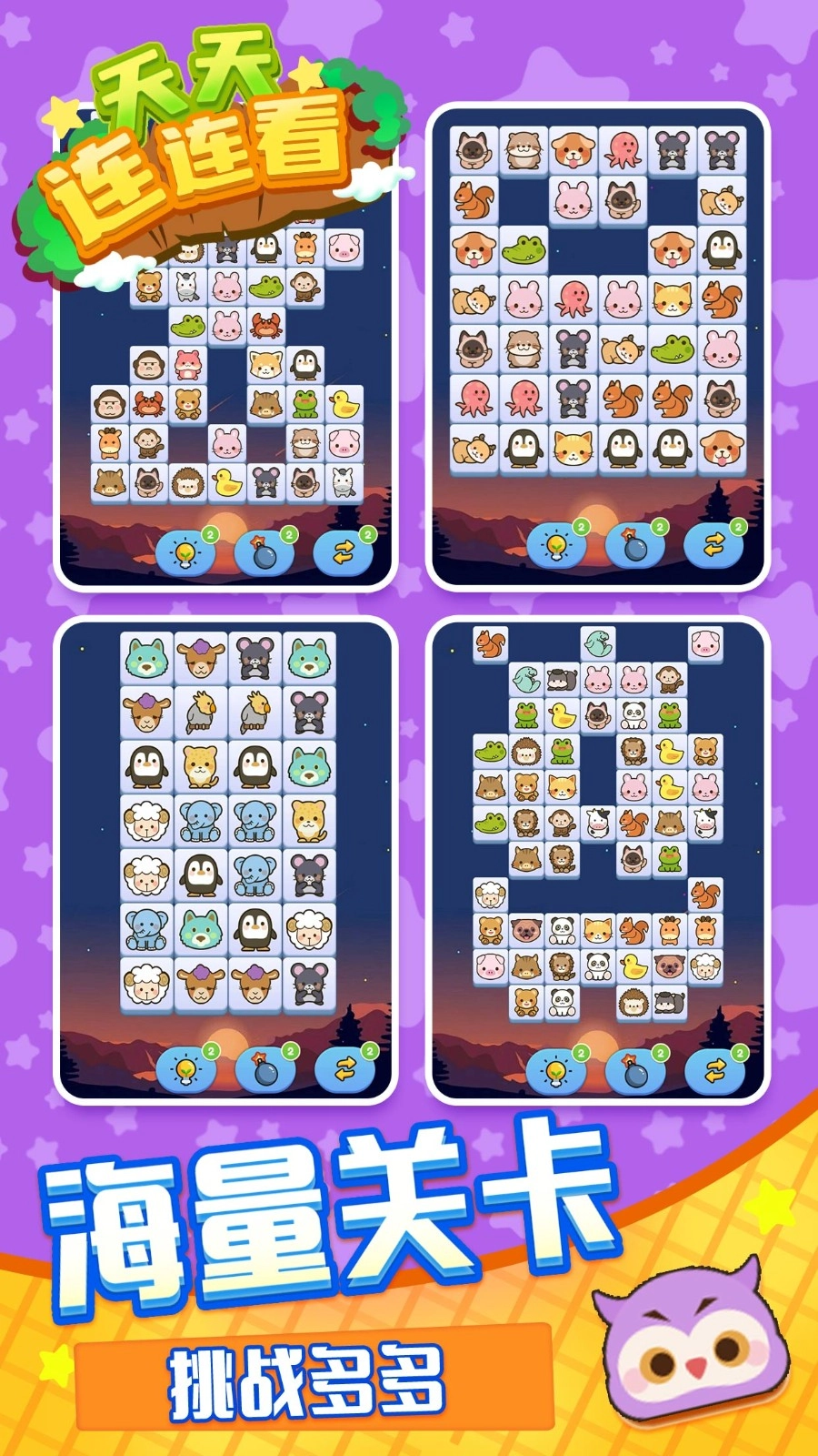 《天天连连看》是一款趣味十足的休闲益智游戏,它采用卡通绚丽的画面风格,为玩家带来舒适的视觉体验。游戏中设有超萌的动物消除玩法,操作简单易上手,玩家可随时随地开启游戏,尽情享受消除的乐趣。 游戏玩法轻松休闲,玩家只需找到相同方块并点击连接即可完成消除。在限定时间内顺利完成挑战,还能获得更高分数,过程解压又刺激。游戏中丰富的消除特效震撼夺目,让玩家在消除过程中倍感放松。此外,游戏包含大量关卡供玩家解锁挑战,随着关卡推进,难度会逐步升级,玩家可收集道具助力消除。感兴趣的玩家千万不要错过,随时都能开启畅玩之旅!
