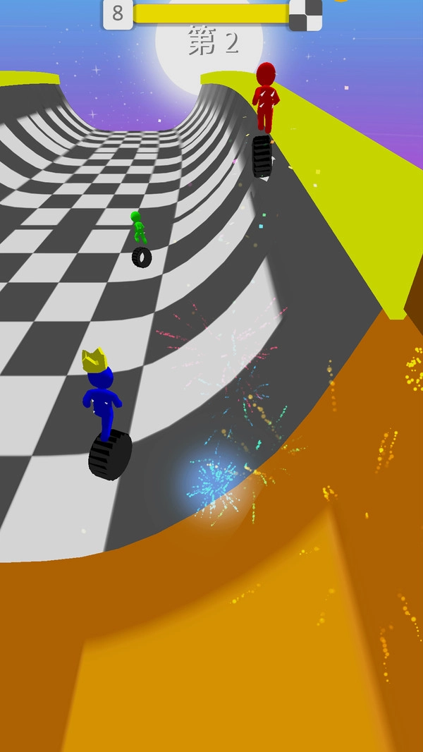 涡轮大巨星安卓版是一款超有趣的竞速游戏,你能想象踩着汽车轮子参与竞速的体验吗?这正是游戏的核心玩法——操控橡胶人踩着单轮,在丰富多样的赛道上展开跑酷挑战,过程充满趣味,快来击败对手吧!