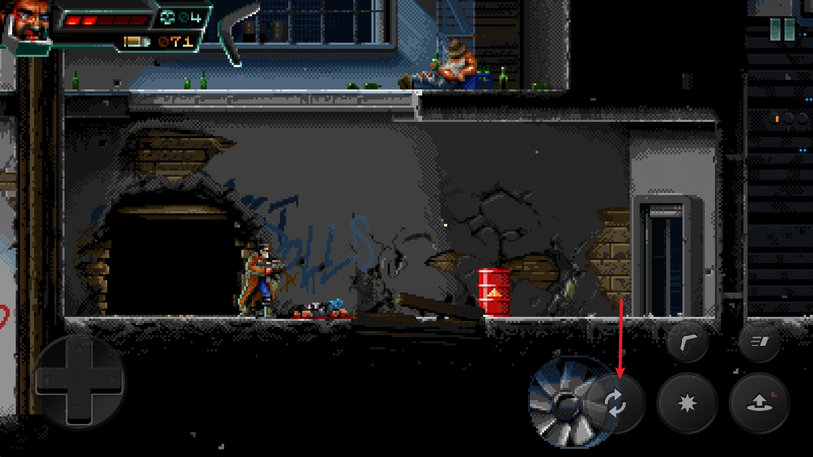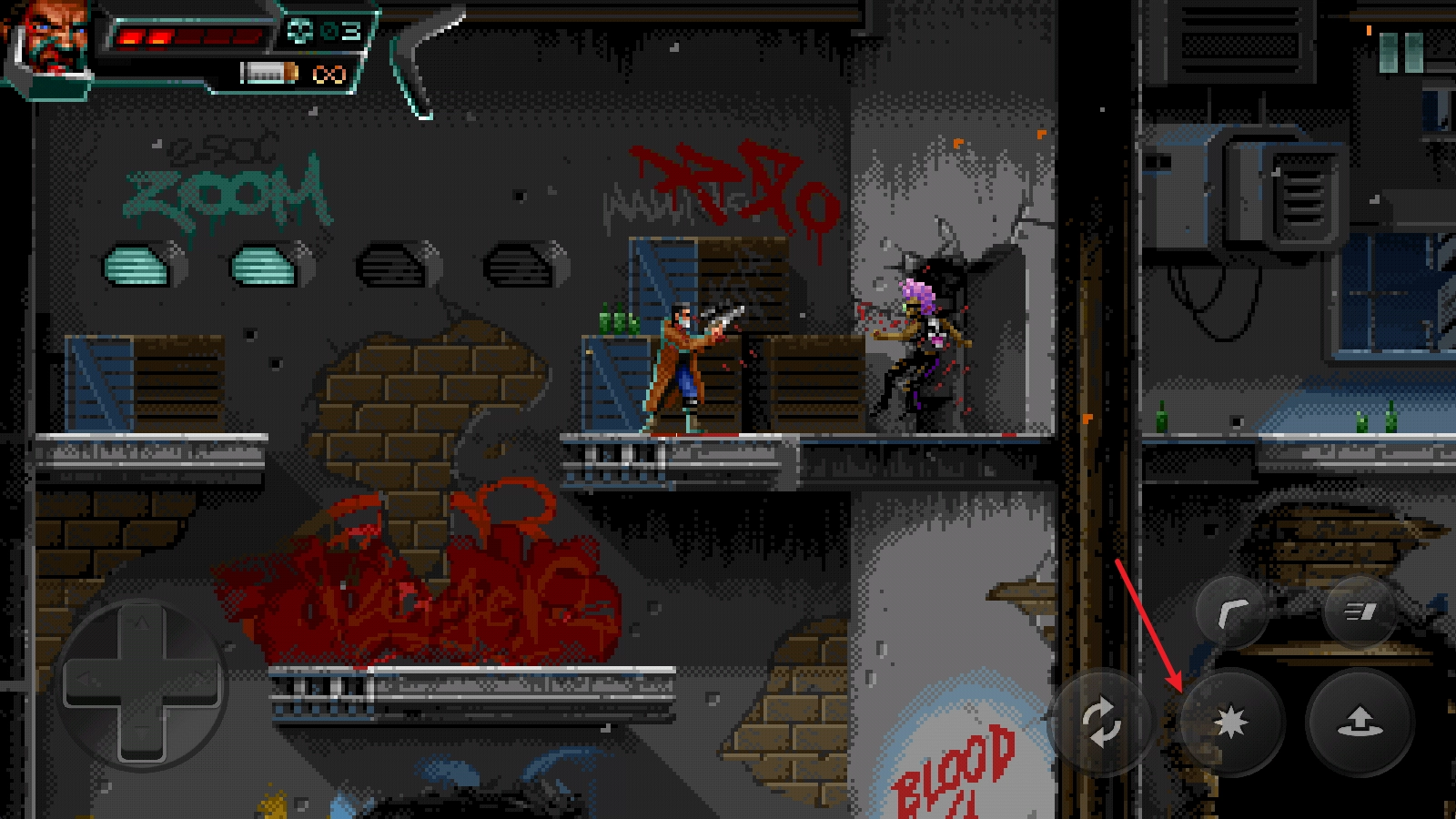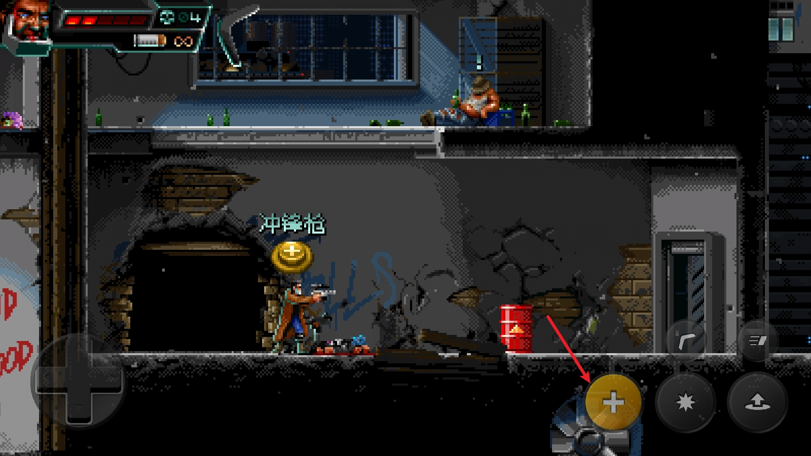 靠近敌人后,点击右侧按钮就能开枪,上方的飞镖按钮则可以发射飞镖。