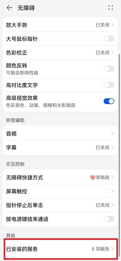 3、会跳转到无障碍功能模式,用户点击最下方的【已安装的服务】