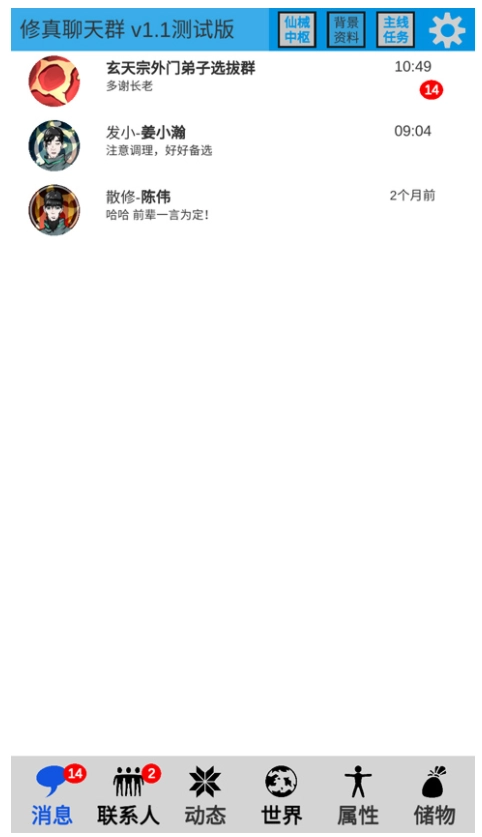 2、全文字形式的修真游戏,和同门聊天,探索世界,提升属性、收集材料,让您轻松的收获更加有趣的修仙人生,感受不同寻常的修仙日常,还有趣味的战斗和冒险,等待玩家自由解锁,顺利闯关。