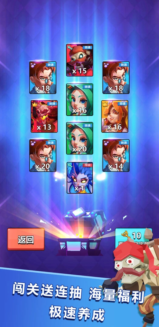 在竞技场内与其他玩家同场竞技,畅快天梯排名争夺,召唤英雄统治战场。灵活组合克制敌手,随机应变百战不殆。提升排名,收集宝藏开箱暗藏惊喜!