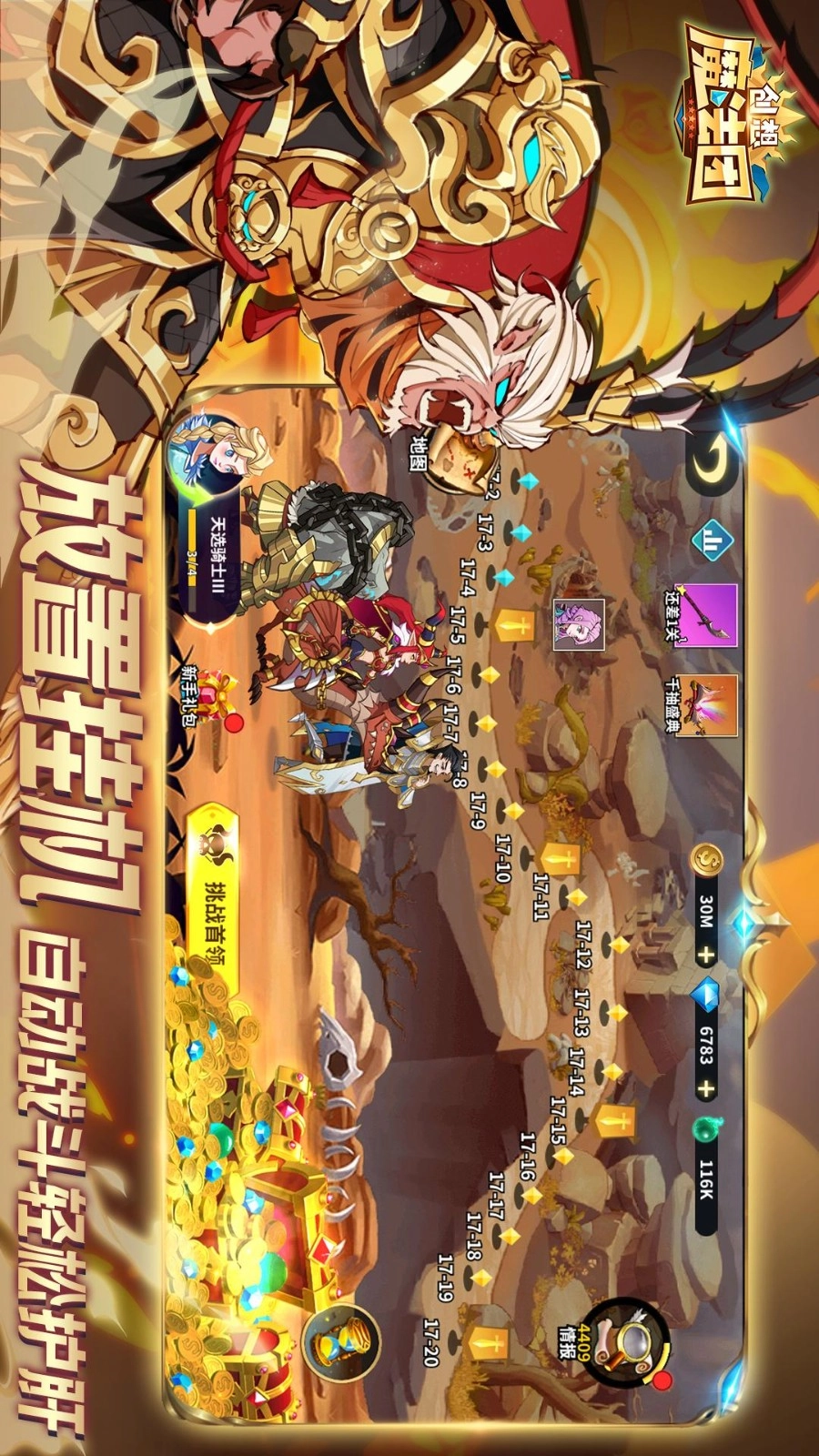 随时随地AFK。通过多次自动战斗轻松升级你的英雄。