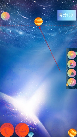 2、点击上方的星球即可让它掉落。