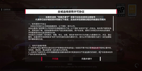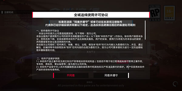 进入全城追缉游戏后,先点击左下角的【进行注册】按钮。