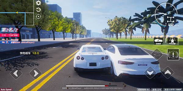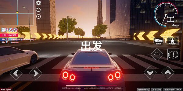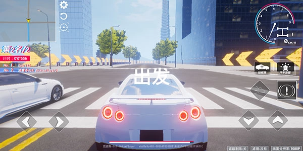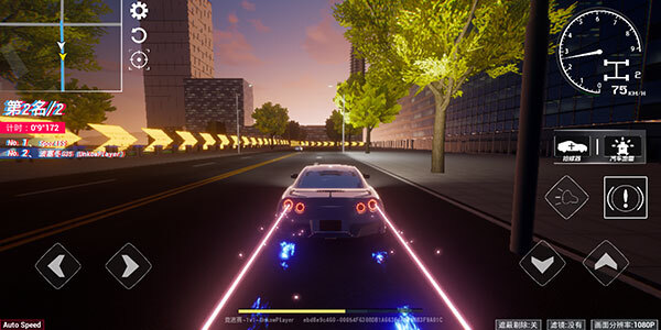 玩家借助下方左右两侧的按钮操控车辆,左侧区域呈现的是排名与用时相关信息。
