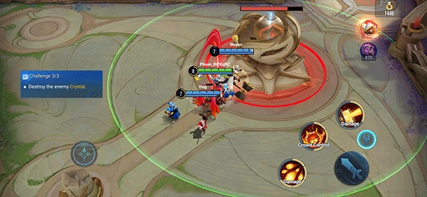 在对战过程中,小编发现本作的地图以及战斗的玩法都极大程度的还原了端游,玩家可以在其中发现很多端游的影子。在屏幕的左上方有缩小的地图,可以看到目前的敌我双方的防御塔的存留情况也可以看到我方队友的所在位置。把握住这些才能准备好战略时时准备来一波漂亮的伏击~~只有推到了对方的水晶才能获得战斗的胜利。