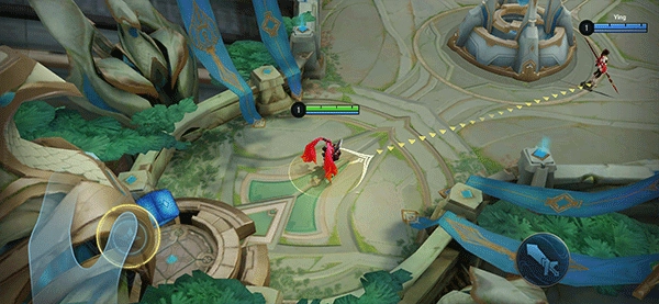 本作中采用的是虚拟摇杆加按键的操作模式,玩家可以左手控制人物的移动,右手控制人物攻击。游戏在一开始的时候有一个推荐的游戏手势,按照这样的方式拿设备比较方便玩家的操作,走位、放技能往往准确性更高。