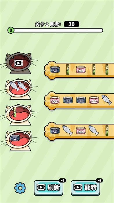 4、在猫的世界里开始一种全新的零食消除体验,操作也很容易上手。