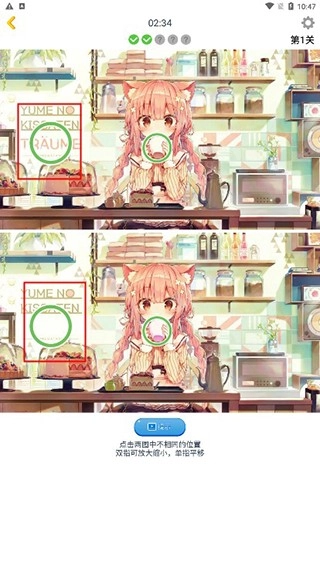 2、精致的动漫二次元找茬游戏,带给您刺激的关卡挑战,玩家需要学会认真的观察,完成更多的找茬任务,获取超多的奖励,适合休闲的时候打发无聊的时间,轻松的体验。