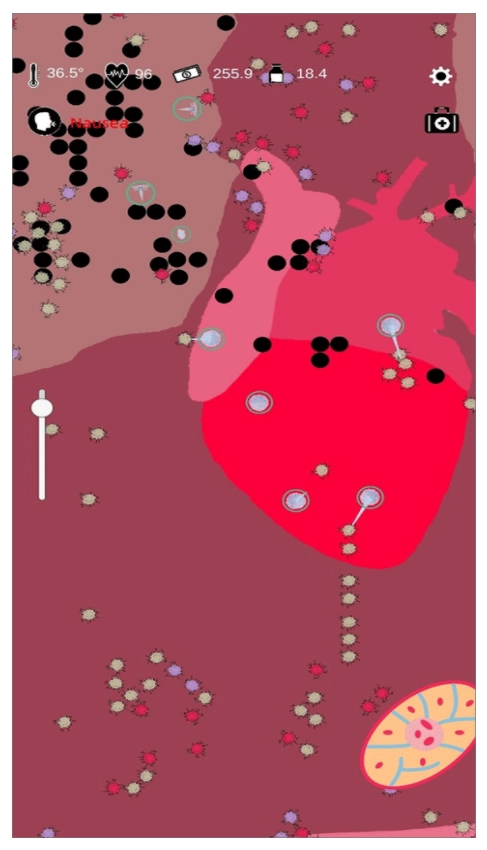 3、免疫战争游戏以闪烁的搞笑图形代表心脏、肌肉、肺和肾脏,你需要做的就是帮助击退病毒威胁;