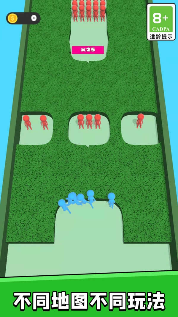 2、你要收集更多的士兵才可以更好的壮大自己的队伍,享受快感。