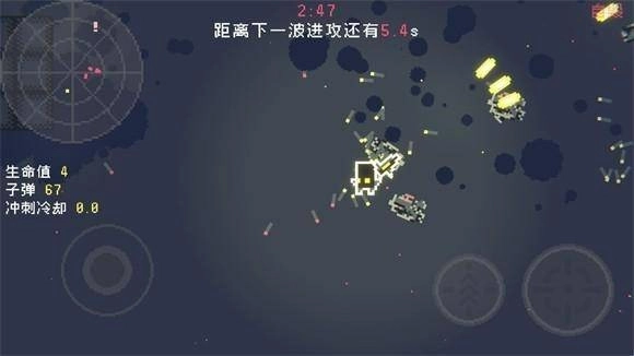 2、正式开始后左边控制角色的移动,右边是闪避和射击。