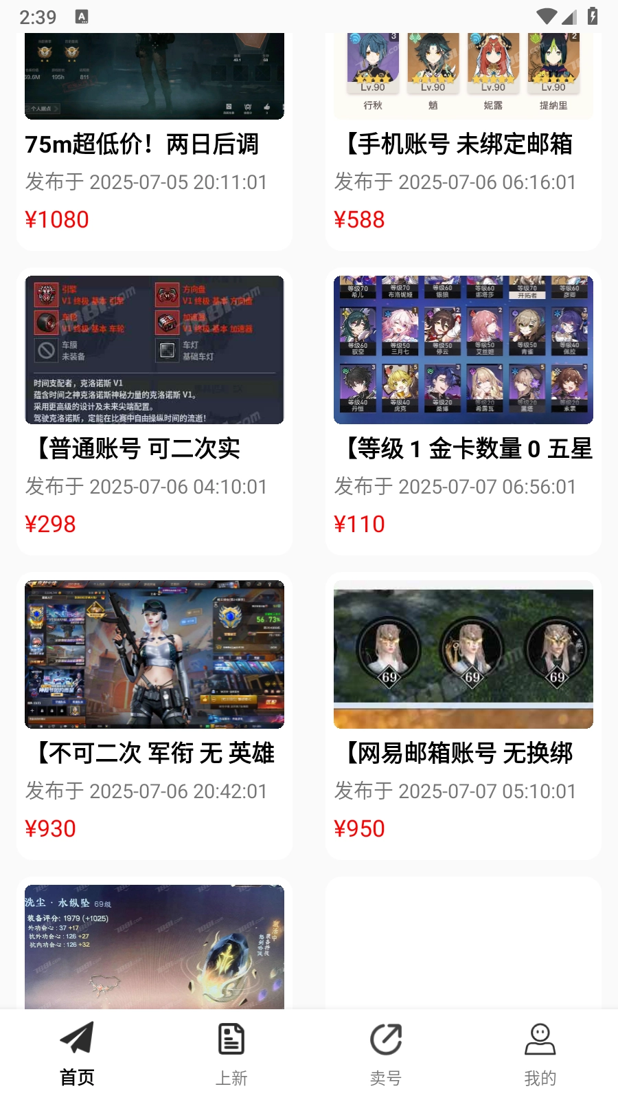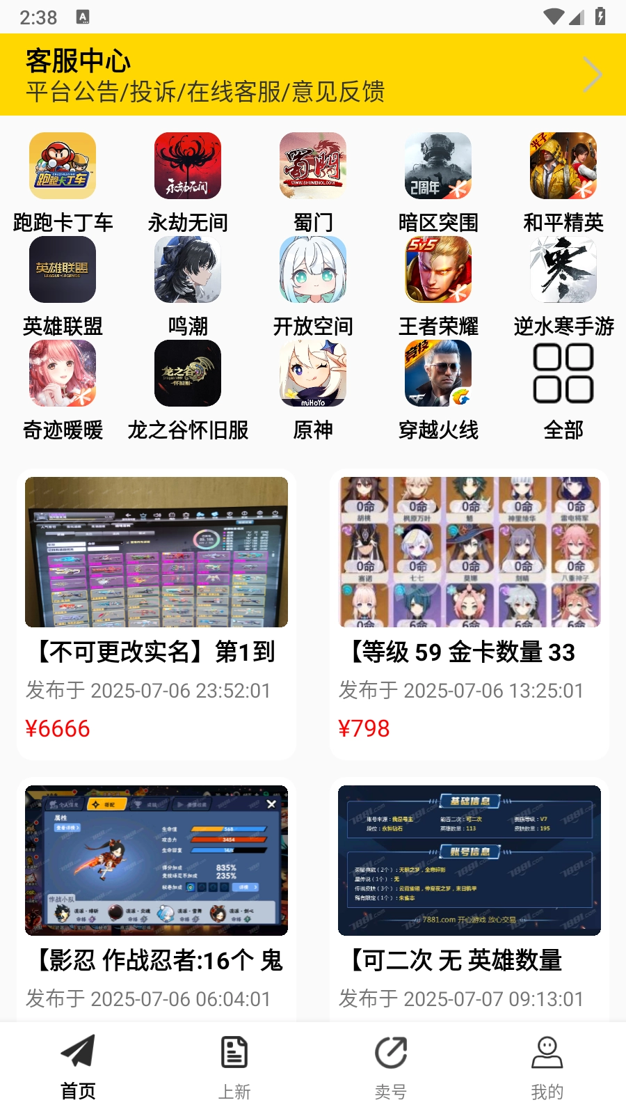2.进入到首页汇集了很多的游戏账号