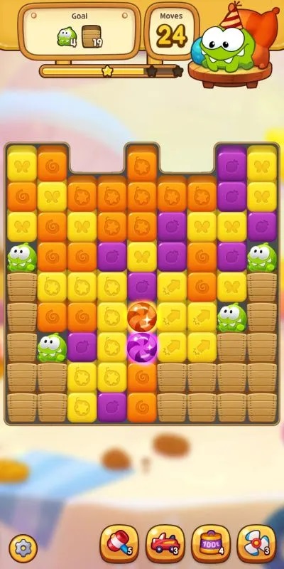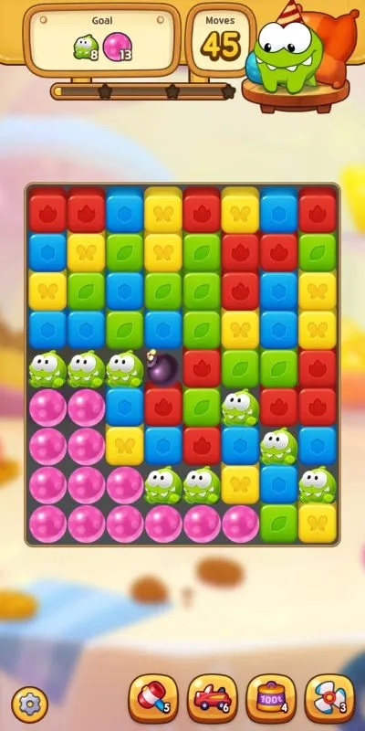 割绳子爆破目标、消除谜题中的各类障碍,以及通过彩色方块的匹配来达成这些任务。把图块合并时带来的刺激与满足感,特别是在大量解锁特殊图块或提升能力的过程中,往往会让你分散完成关卡目标的注意力。