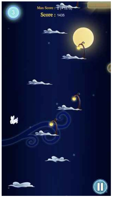 4、奔月之路凶险重重,会遭遇从天而降的冰雹,左右移动的冰球,暴雨暴雪天气等障碍,碰到冰雹冰球或者失足掉落,就会导致游戏的失败,需要玩家重新开启任务,努力赢得超高的分数。