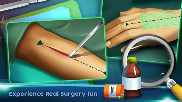 游戏的操作方式十分简易,系统会引导玩家按步骤选用合适的工具,将伤口处理得尽善尽美。