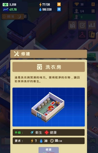 2、【建造】开始的监狱是比较少的,后续你要去不断的扩大,同时去多建造出一些设施吧;