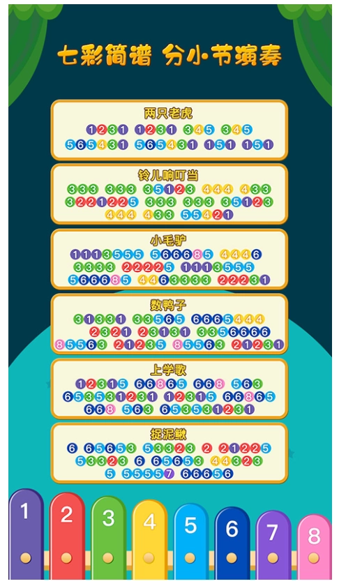 2、熟练掌握1-8个阿拉伯数字,跟着小节提示进行演奏,轻松的游戏操作方式,还有十分详细的游戏教程,更加容易的掌握,分小节演奏,不断的学习,弹出喜欢的音乐,变身小小音乐家。
