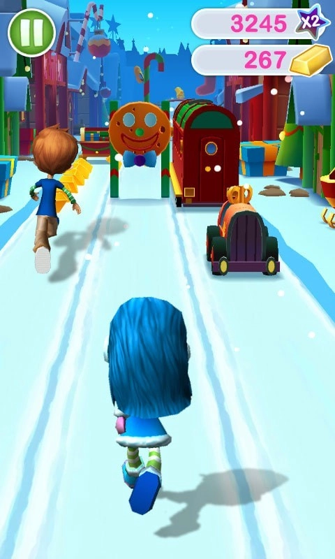 2.赛道上不仅有其他的伙伴,还会有卡通小火车,尽情体验和小火车赛跑的快感吧。