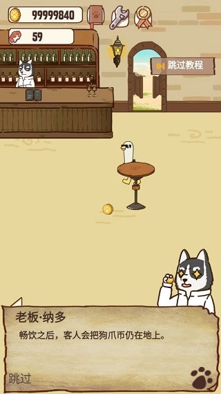 4、点击即可获取,想要让酒吧变得更加具有人气,更加奢华,狗爪币是必不可少的资源,现在连续点击宣传按钮可以招揽客人
