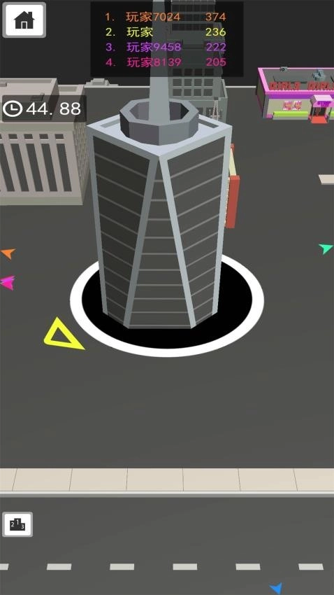 2、持续操控黑洞吞掉所有物品,前期主要以简单的物品为主,随着关卡推进才会慢慢触发建筑设施,非常精彩。