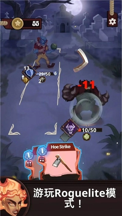 用你的手牌去击败幻影。打出卡牌需要消耗能量。请注意!每张卡牌都有特定的可打出目标类型,这个信息会显示在每张卡牌的左上角。