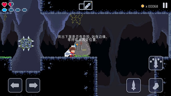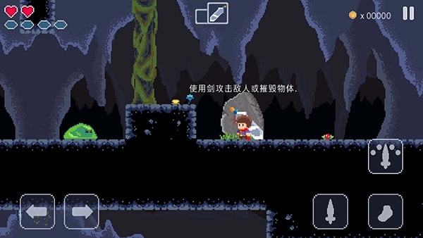 进入《杰克任务:剑的传说》游戏后,能看到左侧按钮用于操控角色移动,右侧的鞋子按钮则负责控制跳跃动作。