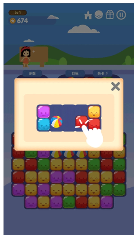 3、玩法也是十分简单,玩家们只需将相同方块进行组合,然后三个、四个或者五个连成一线,也可以多排混合消除,配上华丽的特效以及激萌的特效音,更加的爽快,令人沉浸其中。