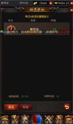 开启PK宝箱有特定冷却时长,冷却阶段其他玩家可能抢夺该宝箱,务必守护好自己的物品。玩家每次参与野战都会积累PK值,当PK值排名第10时,可获取极品称号“乱斗之霸”;若PK值位列第1名,则能赢得超级称号“乱斗之神”,属性会得到显著提升。