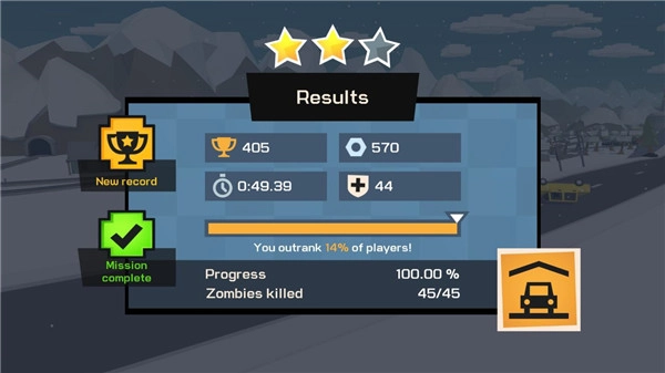 此外,游戏内还准备了丰富的汽车造型和各类零件道具供玩家解锁。玩家可以自由组装改造车辆,为爱车配备各种武器、加固车身、提升性能,打造专属的超强战车,助力自己更顺利地前行,抵御僵尸的侵袭!游戏画风清奇,给玩家带来不一样的游戏体验。