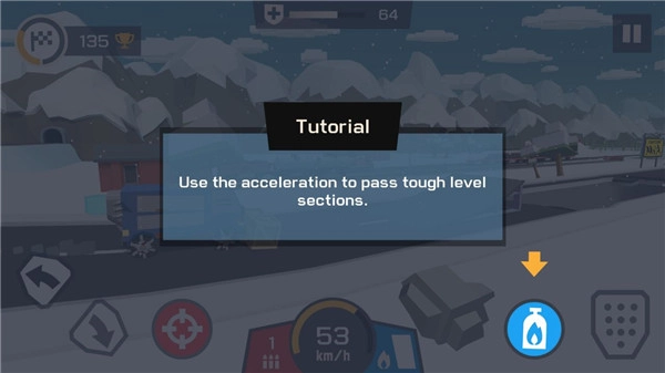 经典的易上手操作方式,指尖轻点就能操控汽车前进、发射子弹、飞跃等动作。