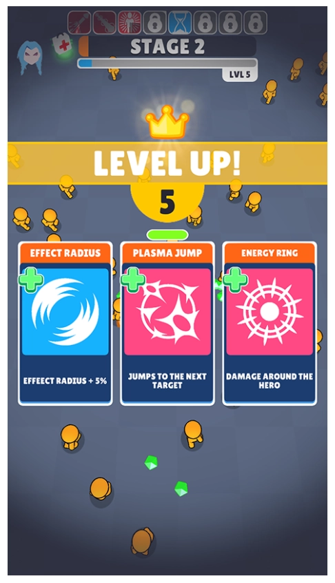 4、操纵自己的角色躲避敌人的攻击,消灭更多敌人,获得经验进行升级,还可以选择不同的技能,即便是面对数不清的敌人,也能拥有一战之力,玩家还能挑战强大的boss,持续的闯关。
