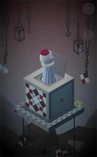 BOSS是藏在八音盒里的怪物头小丑,这差不多是西方孩子共有的噩梦。它会不停地用头撞击,机器人没有攻击能力,只能持续躲避。怪物头槌次数超过八次(或者是六次?),就会把自己撞得支离破碎。