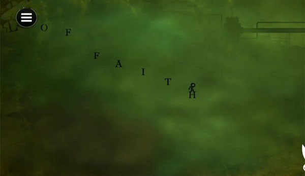 字母人HERO从山坡滚落之后,退路被截断了,只能硬着头皮向前探索。他往前奔跑着跳下通道,踩着木板一路向下抵达中间的平台,在这里会邂逅第一句箴言。接着他向上跳跃,再朝右边跑去,推动字母F,让它和其他字母伙伴汇合,最终组成“FAITH(信仰)”。