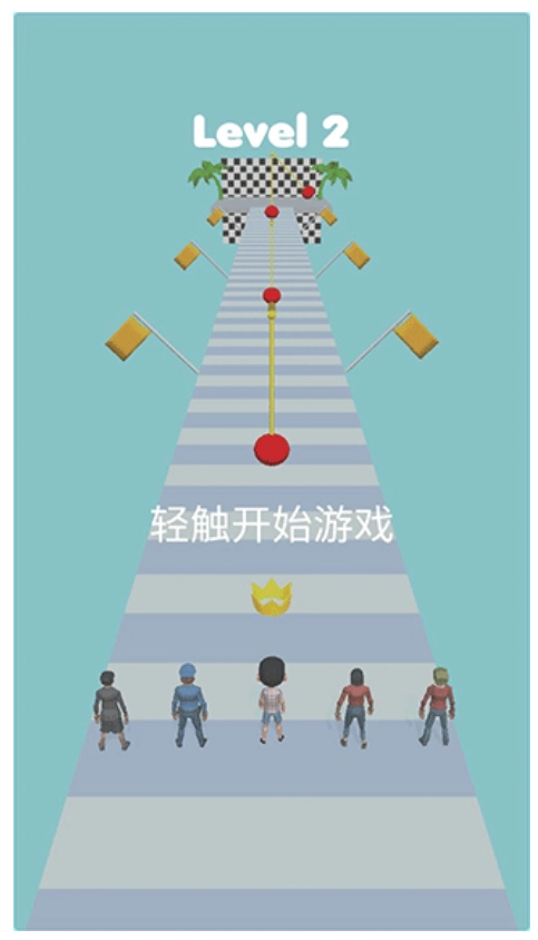 3、玩家只需要点击自己的人物开始通关,这过程中要注意千万不要被障碍打到,否则也会导致游戏的失败,简单的游戏操作,灵活的移动,考验着玩家的操控性,带领角色不断的冒险。