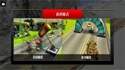 进入游戏界面后,点击“开始游戏”按钮,从系统提供的“无尽模式”与“关卡模式”中选择任意一种模式开启挑战,随后根据屏幕上显示的操作指引驾驶汽车前进,完成关卡挑战。