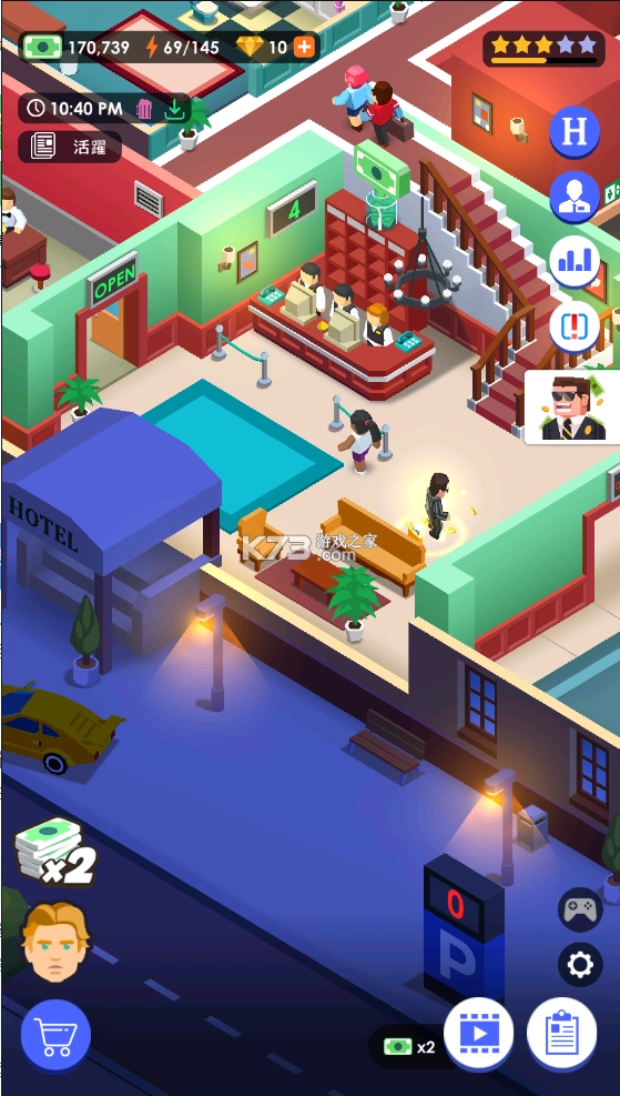 玩家能够对酒店面积进行全方位扩建,将酒店装修升级得更为豪华,从而获取更多利润。