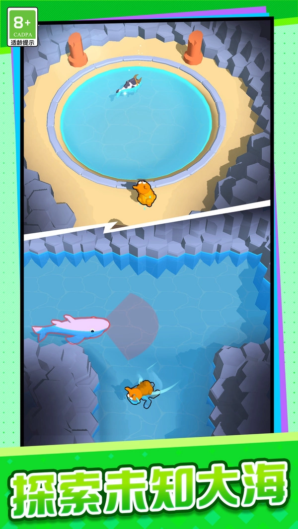 操控角色移动到指定地点后潜入水中,即可开启潜水捕鱼的抓鱼环节。