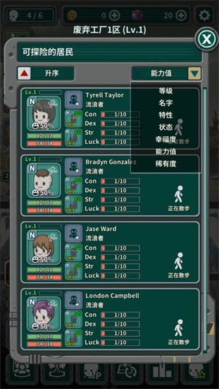你可以挑选要去探险的居民,要是你拿不定主意选谁,还能依据他们的能力值来挑选伙伴陪你一起去探险。