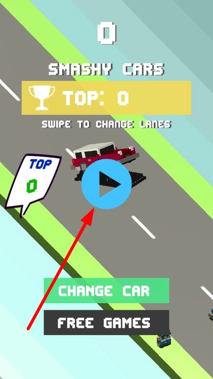 进入游戏主界面后,点击蓝色的播放按钮,就能开启汽车公路飞驰挑战,准备体验换道躲避和撞击的玩法。