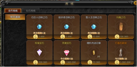 打造石碎片还能从商城购买,这里划个重点:用游戏币购买的是每日必买项,要是你是大R玩家,记得留意钻石商城里的相关道具哦O(∩_∩)O