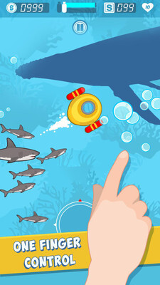 这是一款有趣又刺激的游戏,玩家在水中探险时,得让角色躲开水里的危险生物,这样才能在水中自在地游动。